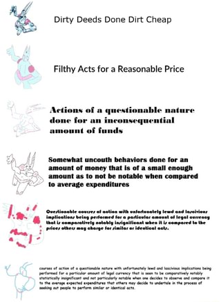 Filthy Acts At A Reasonable Price Meme , Deeds That Have Been Deemed Bad By Majority Of The Populist And Are Thusly Illegal Done For A Price In Which The Doer Gets Low Amounts Of Net Profit.